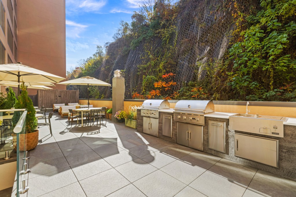 Solaia stood high above the rest in terms of offering the resort-like living Mr. Stern was in search of. The building’s full suite of amenities includes The Sanctuary, along with a co-working space with private conference room, and a resident lounge featuring a fireplace, billiards, demonstration kitchen and event space. Outside, there’s also a dog run and a cliffside roof deck with a custom outdoor kitchen, BBQs, dining areas, firepits and lounge seating.