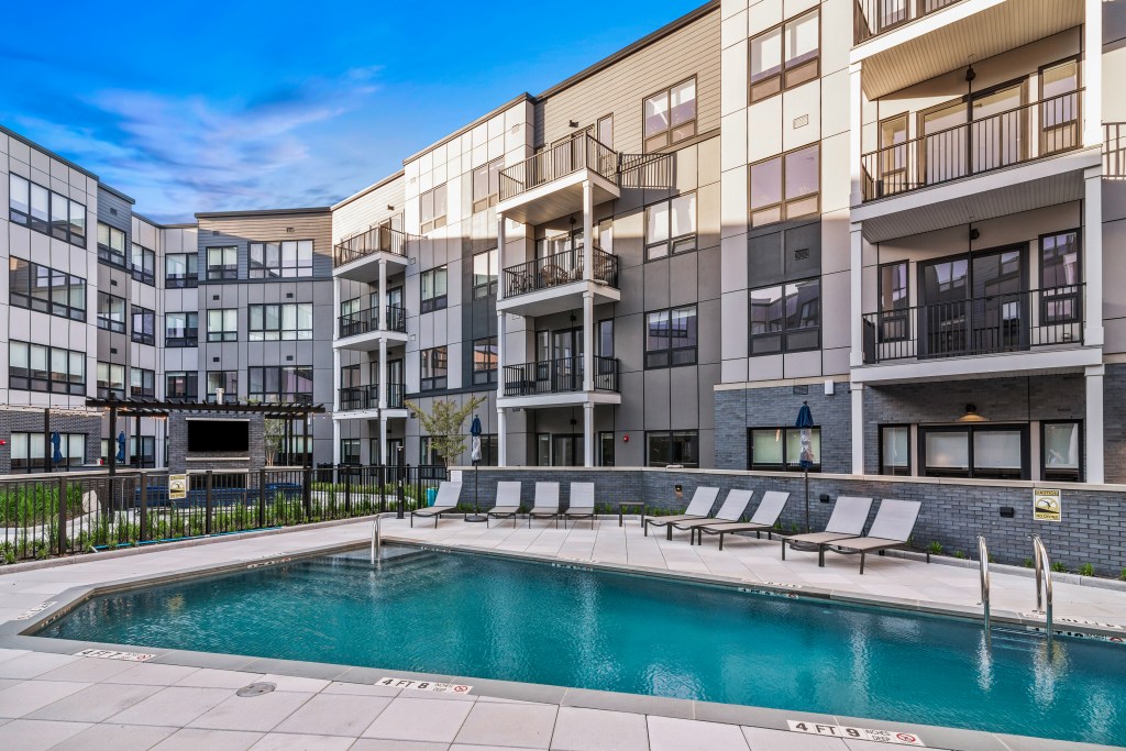 The outdoor amenities bolster the community’s comprehensive lifestyle offerings which also feature a double-height lobby, co-working spaces, private conference rooms and work pods, library nooks, and a billiards lounge with arcade games. Creative spaces are highlighted by a speakeasy with bar and fireplace, demonstration kitchen & dining room, theatre and music studio, meditation room, and children’s playroom. Exercise enthusiasts enjoy a state-of-the-art fitness center, including Echelon bikes, and gym studio with on demand fitness and Crossfit rig. The community also offers concierge service, pet spa, package lockers, bike storage and garage parking with EV charging stations.